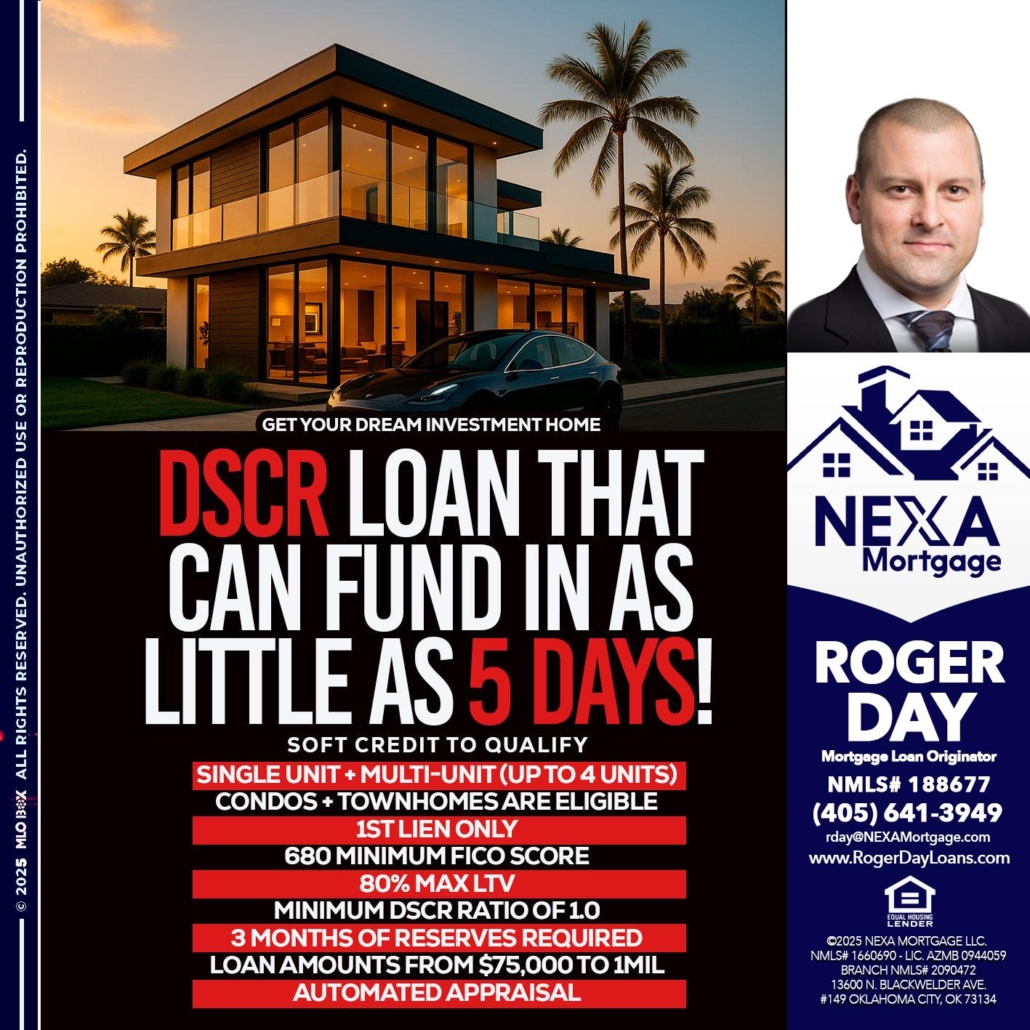 Hi, my name is Roger Day. I’m a Loan Officer with NEXA Mortgage LLC., offering personalized mortgage solutions, fast customized quotes, great rates and service with integrity.