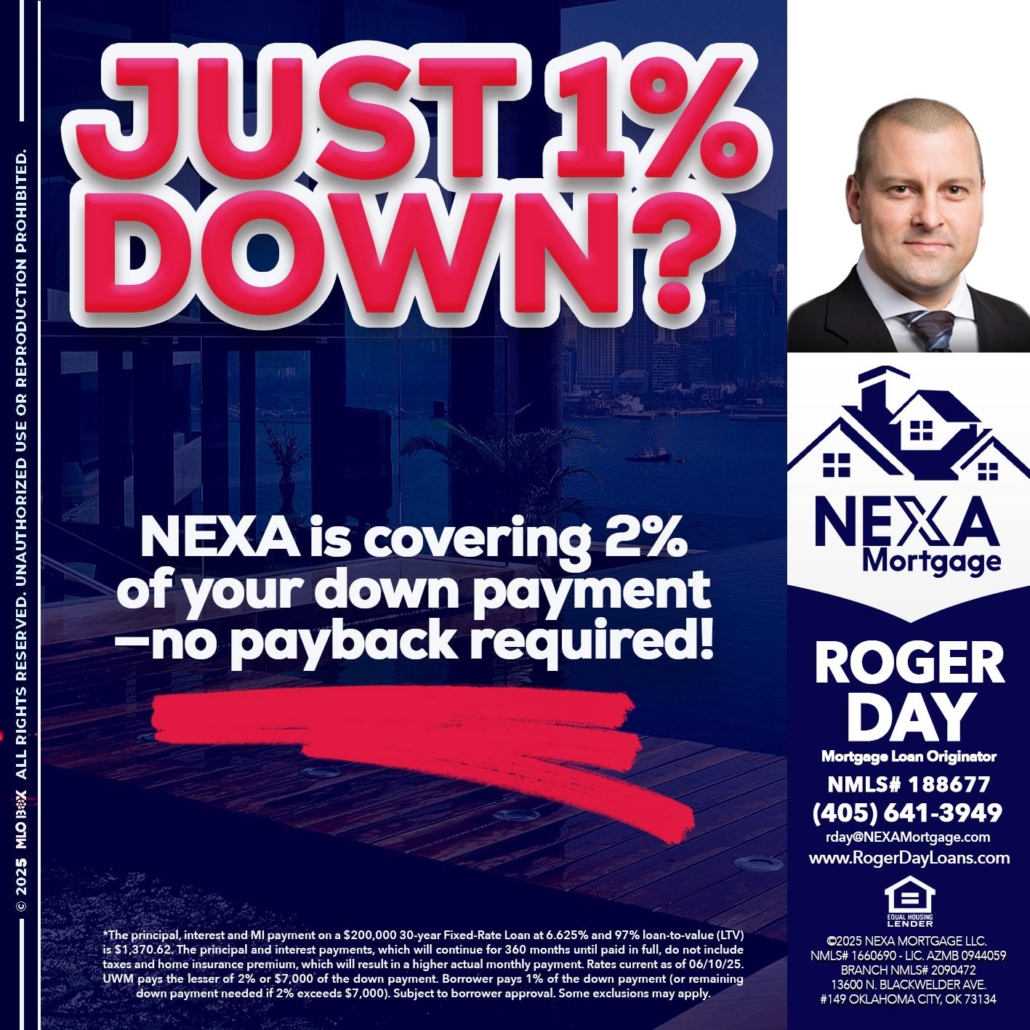 Hi, my name is Roger Day. I’m a Loan Officer with NEXA Mortgage LLC., offering personalized mortgage solutions, fast customized quotes, great rates and service with integrity.